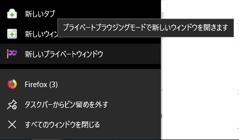 プライベートウインドウ・シークレットタブでキーワードを入れてみる